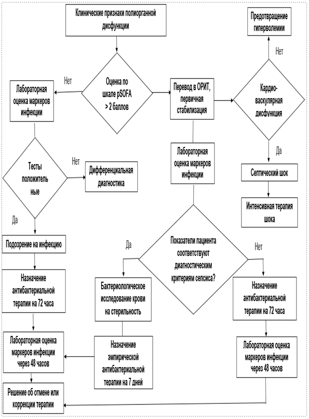 Главным критерием сепсиса у детей является прогрессивное ухудшение состояния с явлениями полиорганной дисфункции и оценкой по шкале pSOFA 2 баллов на фоне подозреваемой или подтвержденной инфекции.