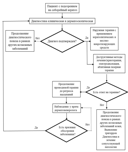 Себорейный кератоз является доброкачественным заболеванием и обычно не требует лечения. Удаление очагов себорейного кератоза проводится по косметическим причинам или при наличии поражений, которые постоянно раздражаются и причиняют пациенту дискомфорт [44].