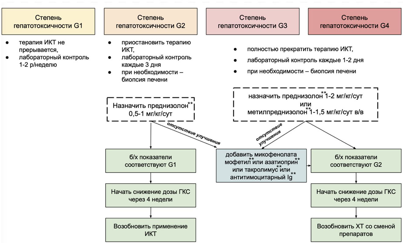 Степень гепатотоксичности присваивается по наихудшему показателю.