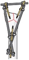 В классификации Pauwels учитывается угол между отломками: первая степень соответствует углу менее 30°, вторая - углу от 30 до 50° и третья - углу более 50°.