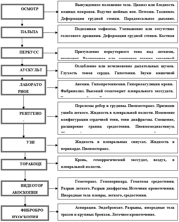 Боль. В патогенезе повреждений груди значительную роль играет ноцицептивная импульсация с обширных рецепторных полей париетальной и висцеральной плевры и межреберных нервов.