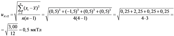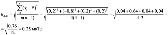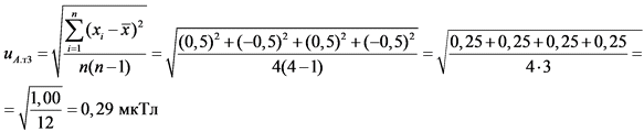 1.1. Для каждой контрольной точки вычисляется стандартная неопределенность по типу A (uA) по формуле (4):