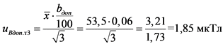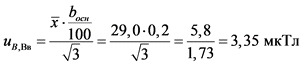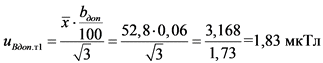 2.2. Для рабочего места вычисляется стандартная неопределенность по типу B (uB), обусловленная основной приборной погрешностью, по формуле (6.1):