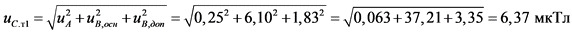 1.3. Для каждой точки вычисляется суммарная стандартная неопределенность (uС) по формуле (7):