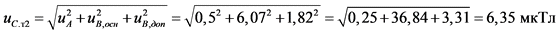 2.3. Для рабочего места вычисляется суммарная стандартная неопределенность (uС) по формуле (7):