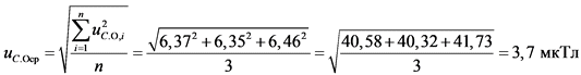 1.4. Вычисляем суммарную стандартную неопределенность средней величины интенсивности ГМП в открытом пространстве (uС,О,ср) по формуле (9):