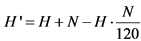 4.2. Если сумма H + N <= 40 дБ, то формула (2) расчета порога слышимости, обусловленного возрастом и воздействием шума (H'), имеет вид: