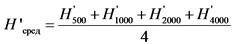 4.9. На четвертом этапе определяется среднеарифметическое значение порогов слышимости, обусловленных возрастом и воздействием шума (H'сред), на частотах 500, 1000, 2000, 4000 Гц по формуле (3):