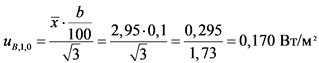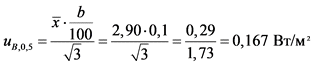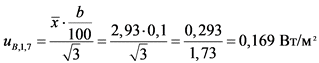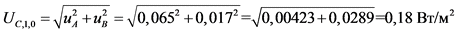 5.3.1. По формулам (2 - 7) рассчитывается суммарная стандартная неопределенность измерений энергетической освещенности диапазона B(uC,УФВ).