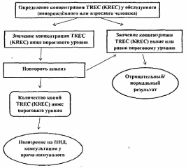 1.2. В МР представлен способ лабораторного выявления первичных иммунодефицитов у новорожденных и взрослых лиц посредством определения уровней молекул T-рецепторных эксцизионных колец (англ. T-cell receptor excision circles, далее - TREC) и каппа-делеционных рекомбинационных эксцизионных колец (англ. kappa-deleting recombination excision circles, далее - KREC) в крови методом ПЦР.