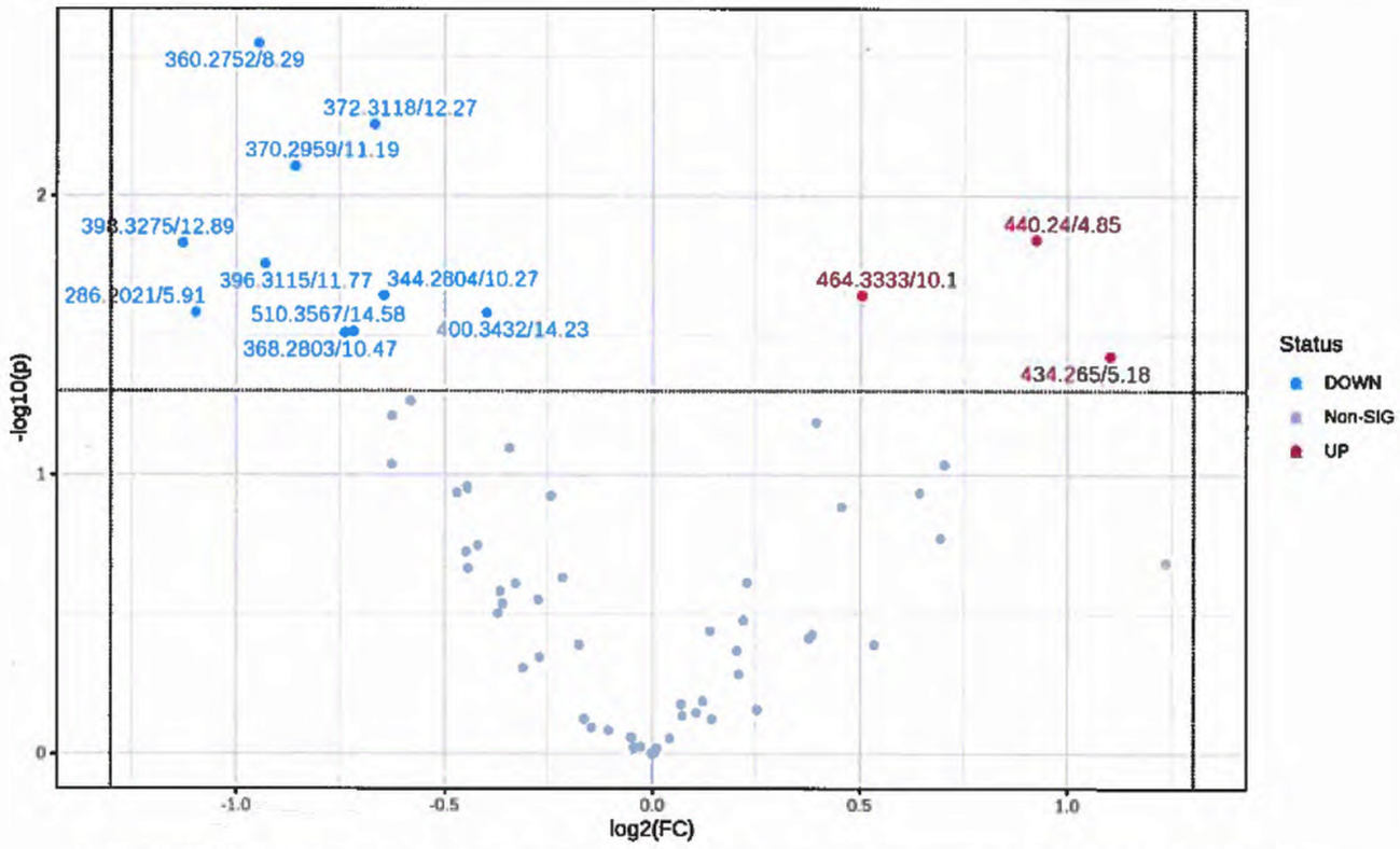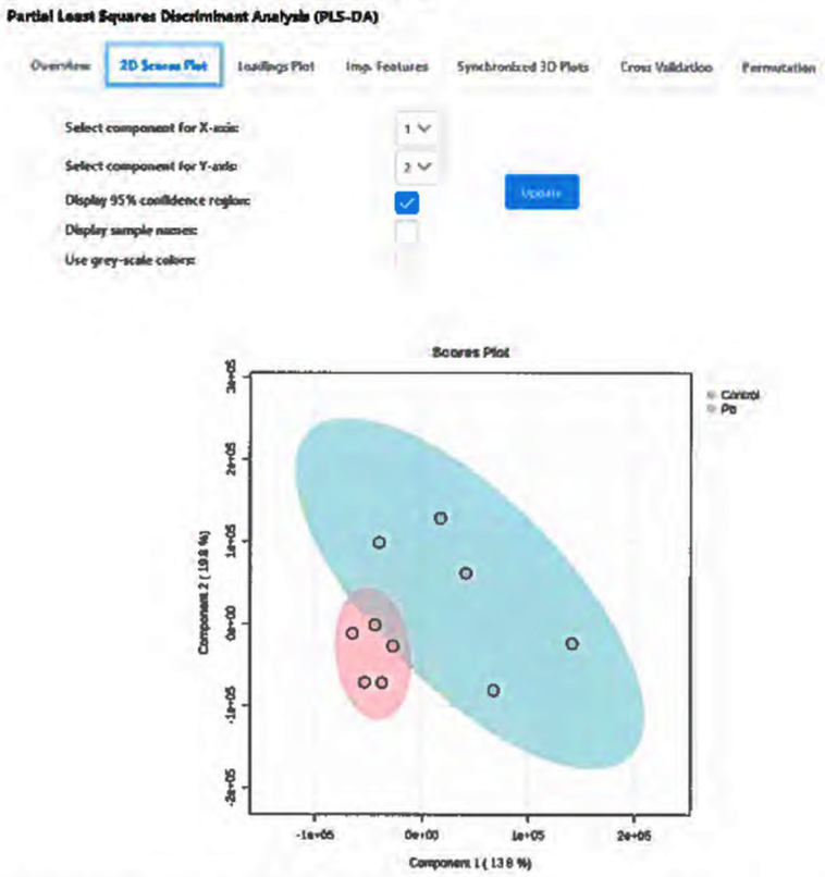 2.3. Оценку изменения содержания совокупности метаболитов в биоматериале проводят с применением методов однофакторного дисперсионного и многомерного статистического анализа [6, 7]. Оценку изменения отдельно взятых веществ проводят методами однофакторного статистического анализа [8].