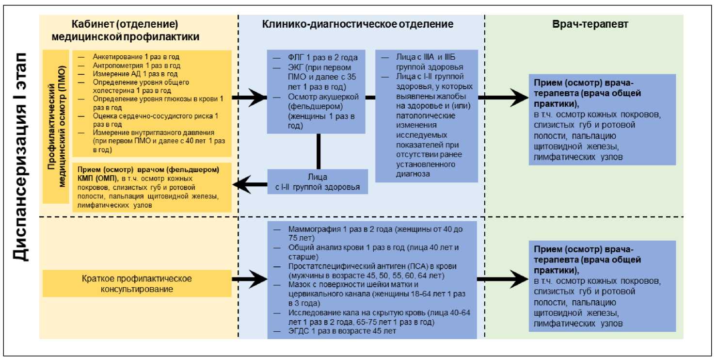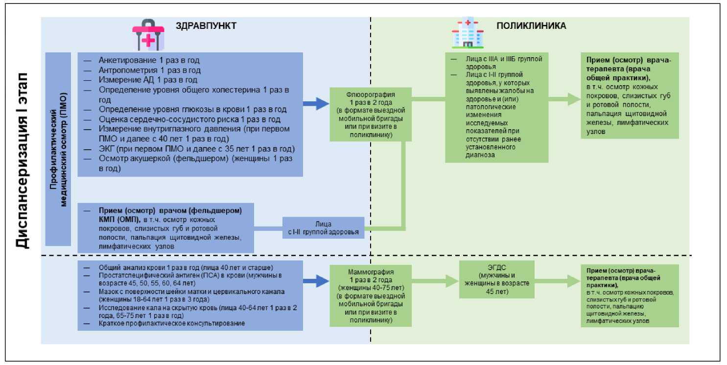 Рисунок 1 - Рекомендуемая схема проведения диспансеризации
