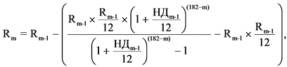 6. Не возмещенная по состоянию на начало месяца m, отличного от первого (m > 1), часть капитальных затрат на строительство генерирующего объекта (Rm) определяется по формуле: