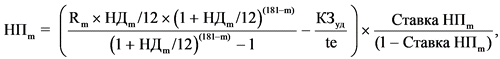 НПm - удельная расчетная величина расходов, связанных с уплатой налога на прибыль организаций, определяемая с учетом особенностей, предусмотренных договором о присоединении к торговой системе оптового рынка, исходя из суммы уплаченного налога на прибыль организаций, рассчитанной исходя из доли дохода от продажи электрической энергии и мощности на оптовом рынке с использованием соответствующего генерирующего объекта в доходе, полученном поставщиком мощности за налоговый период, и (или) информации об удельной величине расходов, связанных с уплатой налога на прибыль организаций, представленной поставщиком мощности в соответствии с абзацем шестым пункта 115(4) Правил оптового рынка, которая с 1-го по 180-й месяц поставки мощности не может превышать величину, определяемую в соответствии с пунктом 11 настоящей методики (рублей/МВт в месяц);