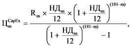Rm - не возмещенная по состоянию на начало месяца m часть капитальных затрат на строительство генерирующего объекта (рублей/МВт);