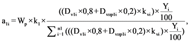 Wi = a1i + a2i + a3i + a4i + a5i + Wki,