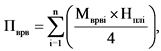 Сумма платежа за выбросы загрязняющих веществ, определенная суммарно по всем загрязняющим веществам исходя из значений объема или массы выбросов загрязняющих веществ, равных значениям временно разрешенных выбросов на текущий отчетный период, умноженных на соответствующие ставки платы (Пврв), определяется по формуле: