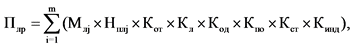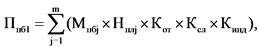 Сумма платежа за выбросы загрязняющих веществ, определенная суммарно по всем загрязняющим веществам исходя из значений объема или массы выбросов загрязняющих веществ, равных значениям нормативов допустимых выбросов на текущий отчетный период, умноженных на соответствующие ставки платы (Пндв), определяется по формуле: