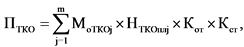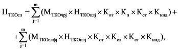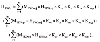 ПТКО - сумма платежа за размещение твердых коммунальных отходов, определенная региональными операторами по обращению с твердыми коммунальными отходами, операторами по обращению с твердыми коммунальными отходами исходя из объема или массы размещенных твердых коммунальных отходов, определенных по результатам производственного экологического контроля в предыдущем квартале, рублей.