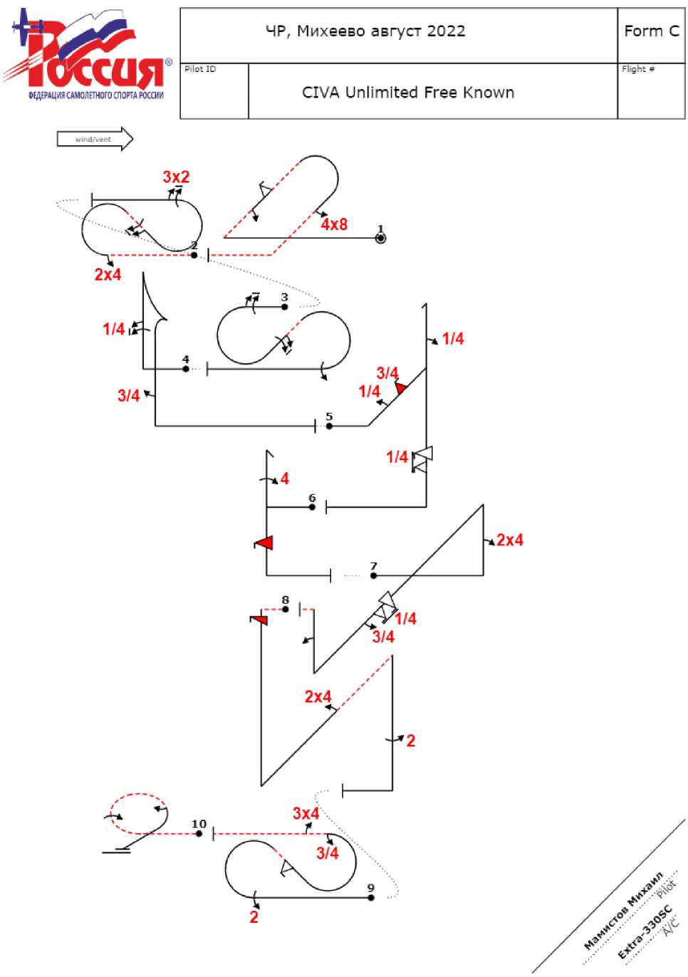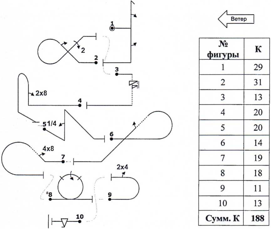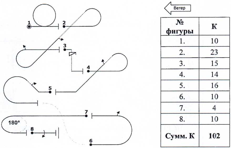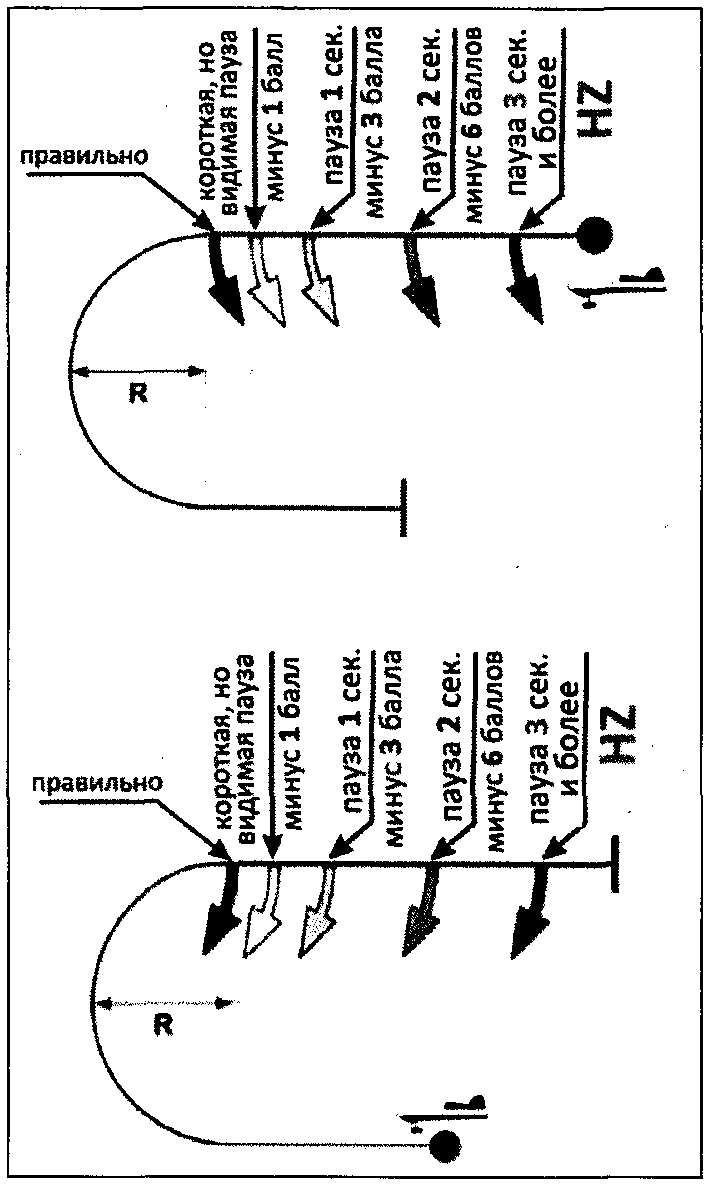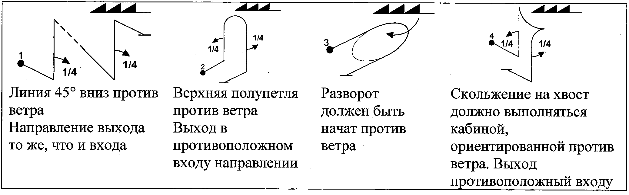 Траектория штопора меняется в зависимости от ветра (Рис. 42). Вид наклонной траектории более выражен, когда фигура выполняется по ветру и улучшается, когда фигура выполняется против ветра. Это изменение в облике не является критерием оценки.
