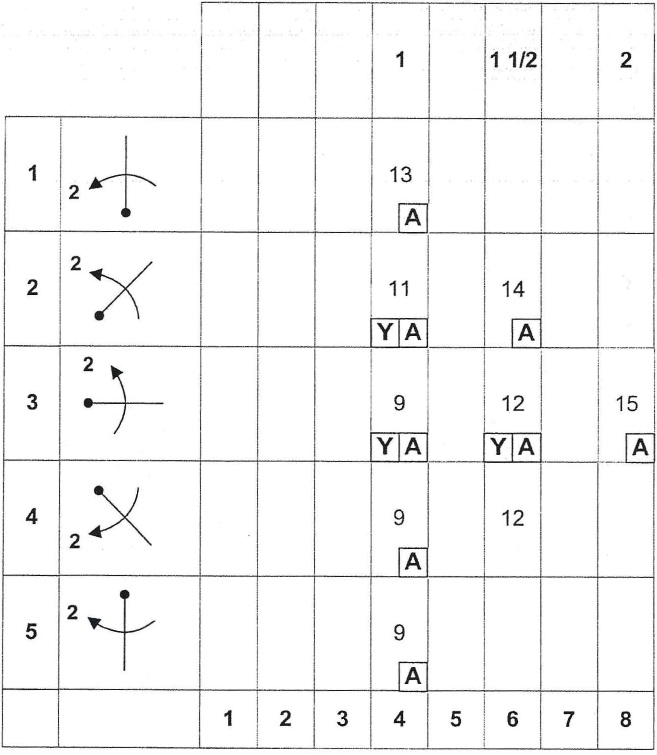 Диктуя оценку за каждую выполненную фигуру, судья должен добавлять, где необходимо, комментарий по неоптимальному расположению фигуры. Соответствующая пометка делается в колонке "Pos" (позиция) в соответствии с Таблицей. Принимая решение о таком комментарии, судья должен оценивать форму и размер базовой фигуры и расположение любого элемента на ней относительно "идеального" расположения всей фигуры в контексте рамок расположения комплекса. Если судья решает, что расположение фигуры достаточно не оптимально, чтобы быть отмеченным, должны использоваться следующие пометки (или их местные/национальные эквиваленты):