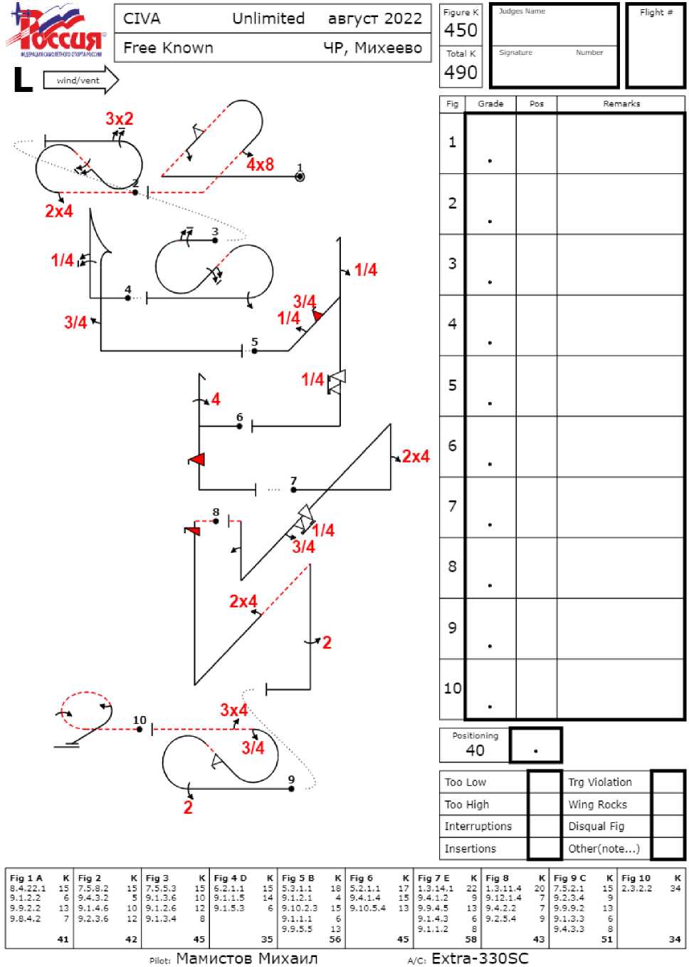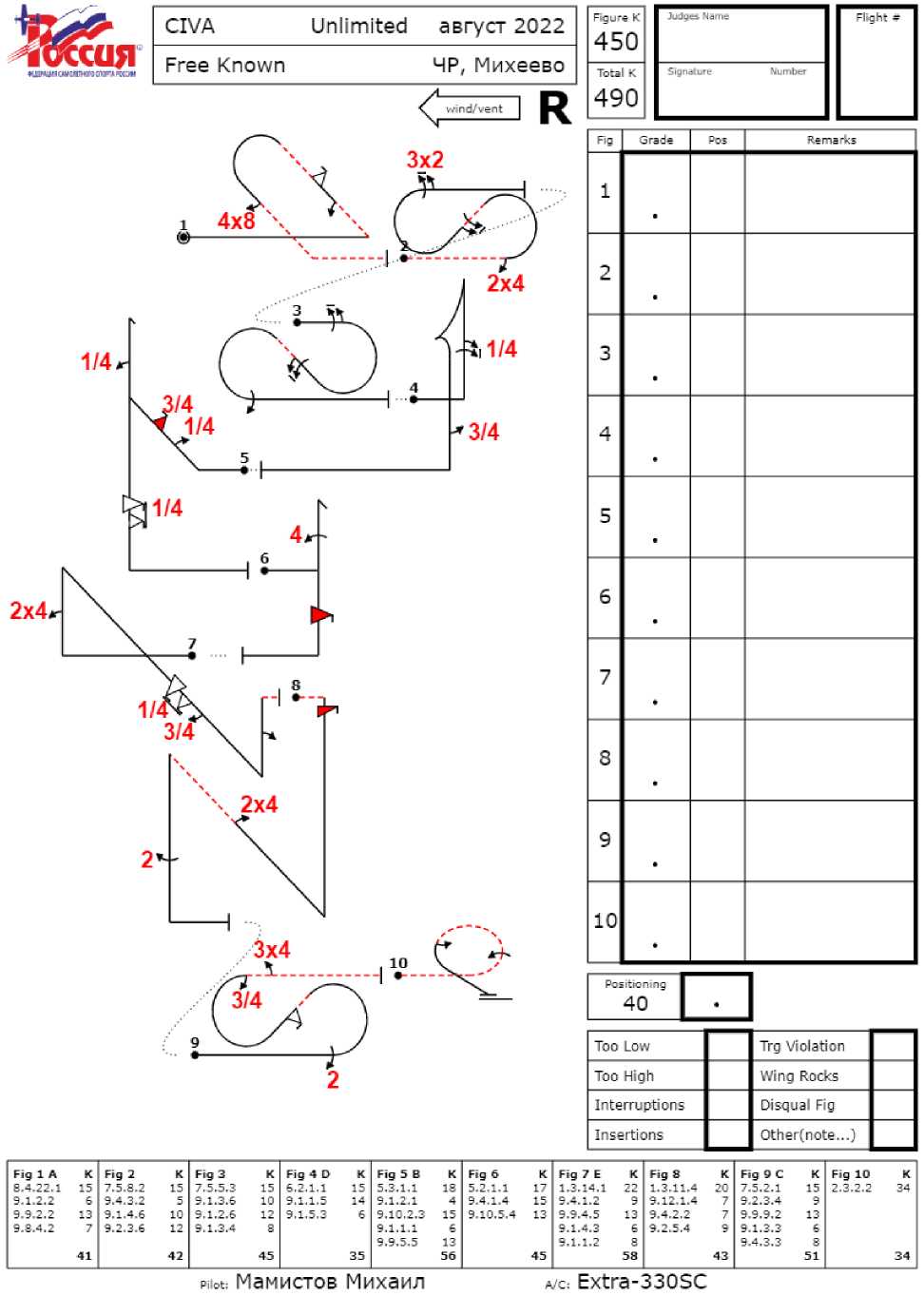 Учет всех параметров, описанных в нескольких коротких параграфах этого раздела даст судье возможность принять ясное решение по любой фигуре, которая явно выполнена не в оптимальной позиции. Оценка конкретной фигуры будет сложным и плохая презентация должна быть отражена в оценке комплекса за место пилотажа. Будет правильно снизить оценку на 0,5 - 1 балл за каждую такую неправильно расположенную фигуру в зависимости от того, насколько большие сложности это вызвало.