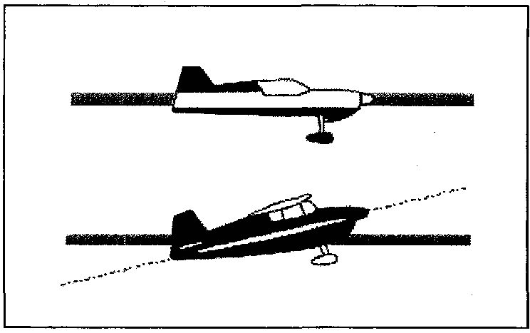 Все штопора начинаются с горизонтального полета (Рис. 41). Для выполнения штопора самолет должен быть "свален" в горизонтальном прямолинейном полете, с явно видимой горизонтальной линии до сваливания. Когда самолет сваливается в штопор, центр тяжести падает с горизонтального полета без кренов.