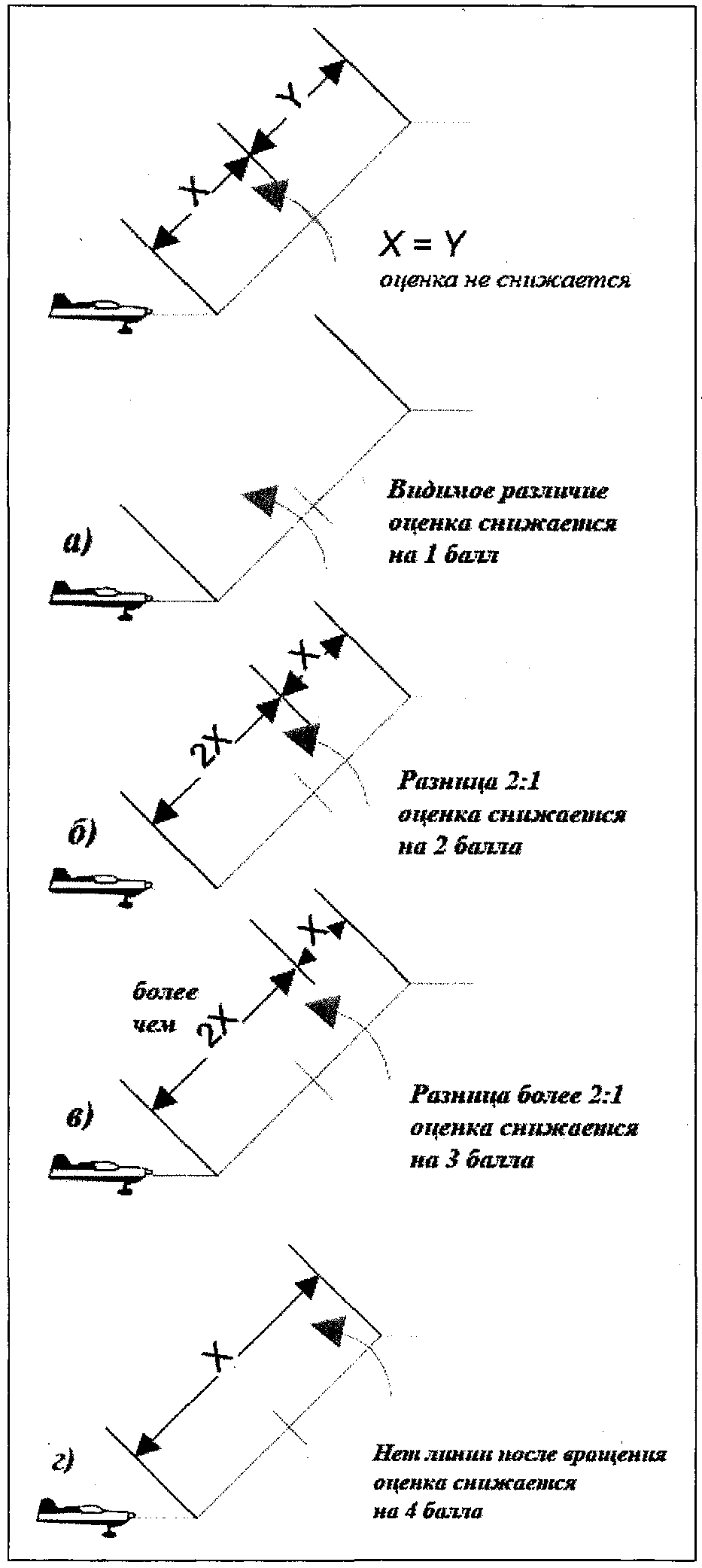 Расположение самолета во время исполнения должно оцениваться следующим образом: