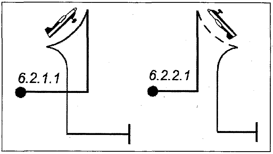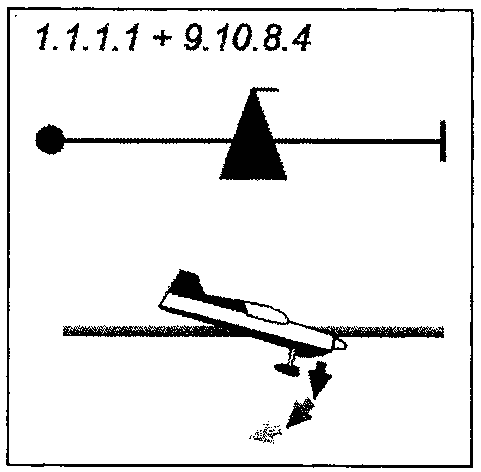 На вводе в положительное штопорное вращение самолет должен явно и однозначно должен изменить положение до известной степени нос вверх/хвост вниз с точки зрения пилота для достижения угла атаки крыла близкого к критическому (Рис. 39). Если самолет изменяет тангаж в неверном направлении, должна быть дана оценка твердый ноль (HZ).
