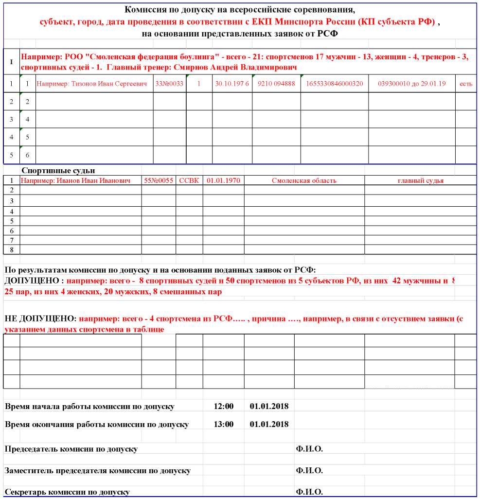 Оформление документов, подтверждающих допуск участников к спортивному соревнованию и судейству.