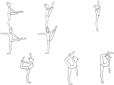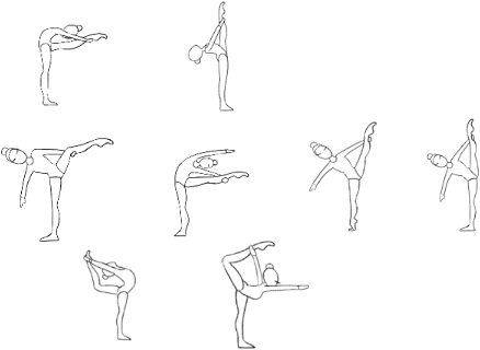 Следующие критерии амплитуды движения тела применяются для повышения технической стоимости равновесий и прыжков со значения A до B или C: