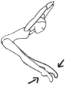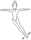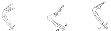 Изгиб назад: верхняя часть тела прогибается назад в грудном отделе позвоночника минимум на 80° от вертикальной линии.