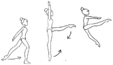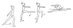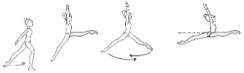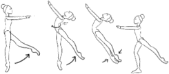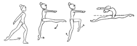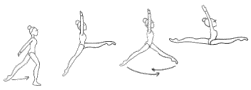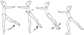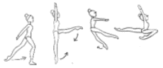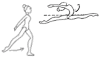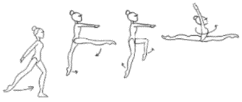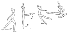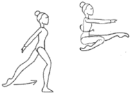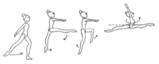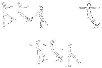 движение сменной ноги должно начинаться перед линией бедер, независимо от конечной формы прыжка (олень, шпагат, + ДТ);