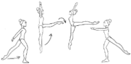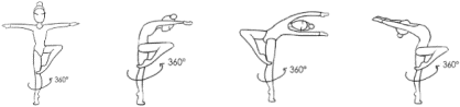 9. "Циркуль" вперед или назад с вращением мин. 360°, без опоры рукой о пол