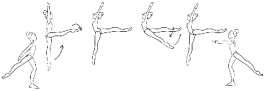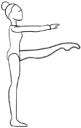 6. Свободная нога поднята мин. на 135° без помощи рук - вперед, в сторону
