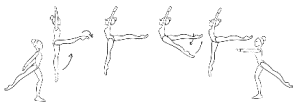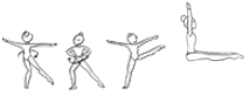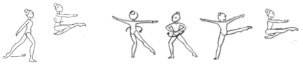 прыжки типа "Кабриоль": обе ноги должны достигать угла 45° в момент "хлопка" ногами;