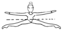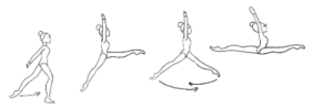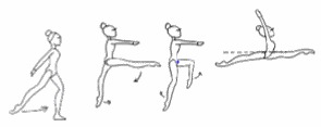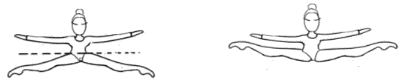 прыжок в "Шпагат": при прыжке с амплитудой 180° передняя нога должна находиться под углом 90°;