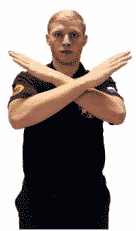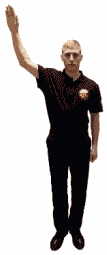 Отвести руку в сторону под углом 45° (для обозначения участника) и согнуть руку под углом, 90°, показывая один указательный палец