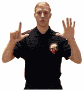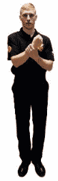 Отвести руку в сторону под углом 45° (для обозначения участника), отвести эту же руку в сторону, показывая указательный и большой палец вместе