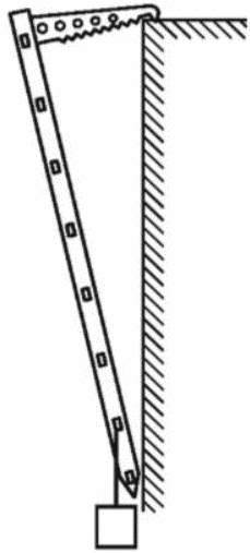 1) прочность тетив и ступеней (рисунок N 2). Лестницу штурмовую при испытании на прочность подвешивают на опорной поверхности вплотную к вертикальной стене в соответствии с рисунком 2. Производят нагружение лестницы путем подвески груза массой 360 кг ко второй снизу ступени, с помощью скоб, размещенных на ступенях вплотную к тетивам шириной от 80 до 100 мм. После испытаний лестница не должна иметь остаточной деформации и повреждений деталей, определяемых визуально.