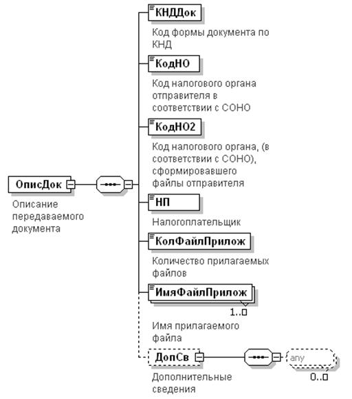 3.1.4. Описание документа присутствует в транспортном контейнере в виде отдельного zip-архива в случае, если описание документа определено типом передаваемого документа. Формат описания документов приведен в Приложении 1 к настоящему документу. Описание документа содержит дополнительную информацию о передаваемом файле и носит исключительно информативный характер. Документ может использоваться для более информативного диагностического сообщения при невозможности расшифровать файлы транспортного контейнера.