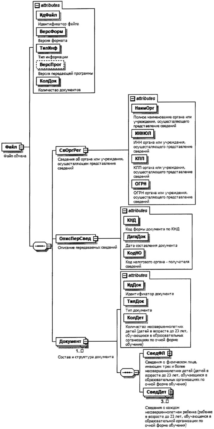 формат представления сведений о физических лицах, имеющих трех и более несовершеннолетних детей (детей в возрасте до 23 лет, обучающихся в образовательных организациях по очной форме обучения), в электронной форме согласно приложению N 3 к настоящему приказу;