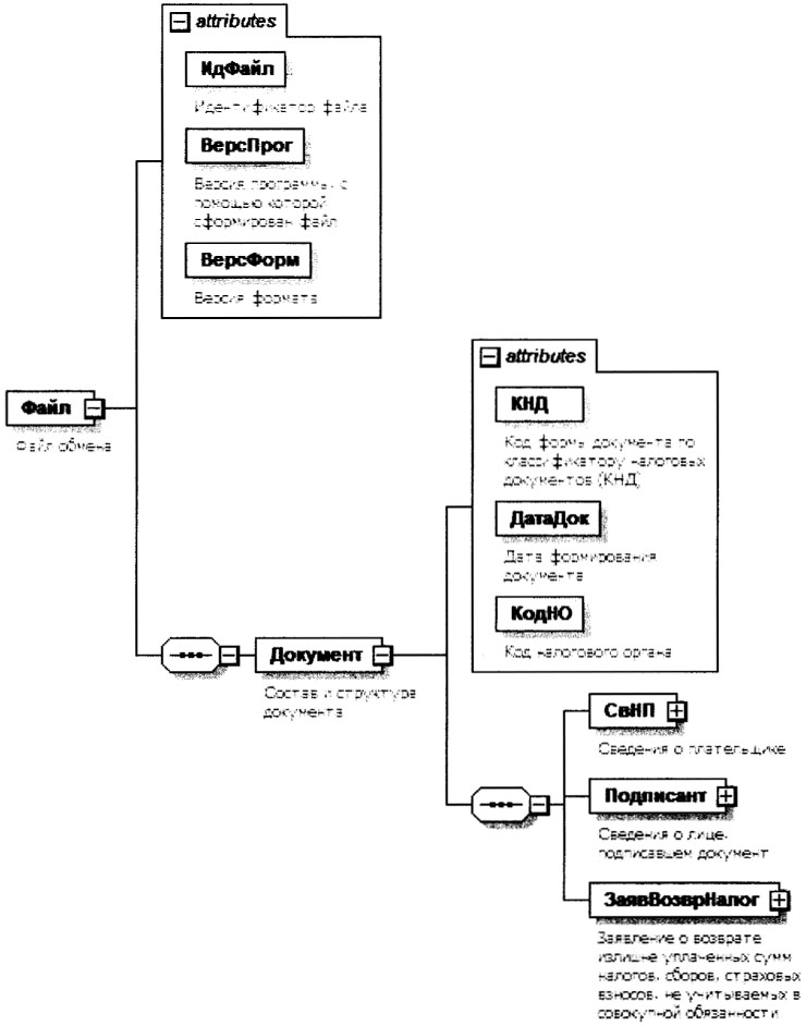 XML-схема файла обмена приводится отдельным файлом и размещается на официальном сайте Федеральной налоговой службы в информационно-телекоммуникационной сети "Интернет".