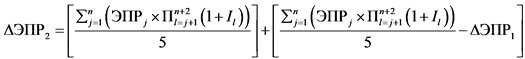 ЭПРj - экономия подконтрольных расходов, достигнутая организацией, осуществляющей регулируемую деятельность в году j предыдущего долгосрочного периода регулирования (может принимать только положительные значения);