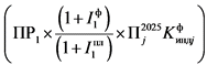 - учтенных при установлении тарифов на услуги по передаче электрической энергии на 2025 год подконтрольных расходов, проиндексированных на индексы потребительских цен в соответствии с параметрами прогноза социально-экономического развития Российской Федерации и индексы изменения количества активов (без учета коэффициента эластичности подконтрольных расходов) в случае если 2026 год и 2027 год являются очередными годами долгосрочного периода регулирования территориальной сетевой организации.