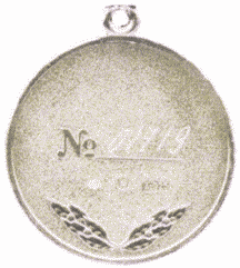 На оборотной стороне медали расположена литера "N" с горизонтальной чертой для нанесения порядкового номера медали; в нижней части медали - две скрещенные лавровые ветви.
