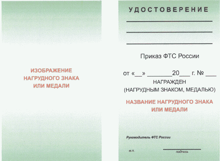 9. Удостоверение к медали "За службу в таможенных органах" подписывает начальник таможенного органа, в котором награжденный проходит (проходил) службу. Удостоверение к медали "За службу в таможенных органах" награжденных должностных лиц, проходящих (проходивших) службу в учреждениях, подписывает руководитель ФТС России.