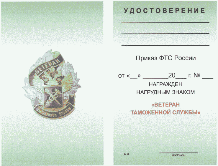 нагрудным знаком "Ветеран таможенной службы"