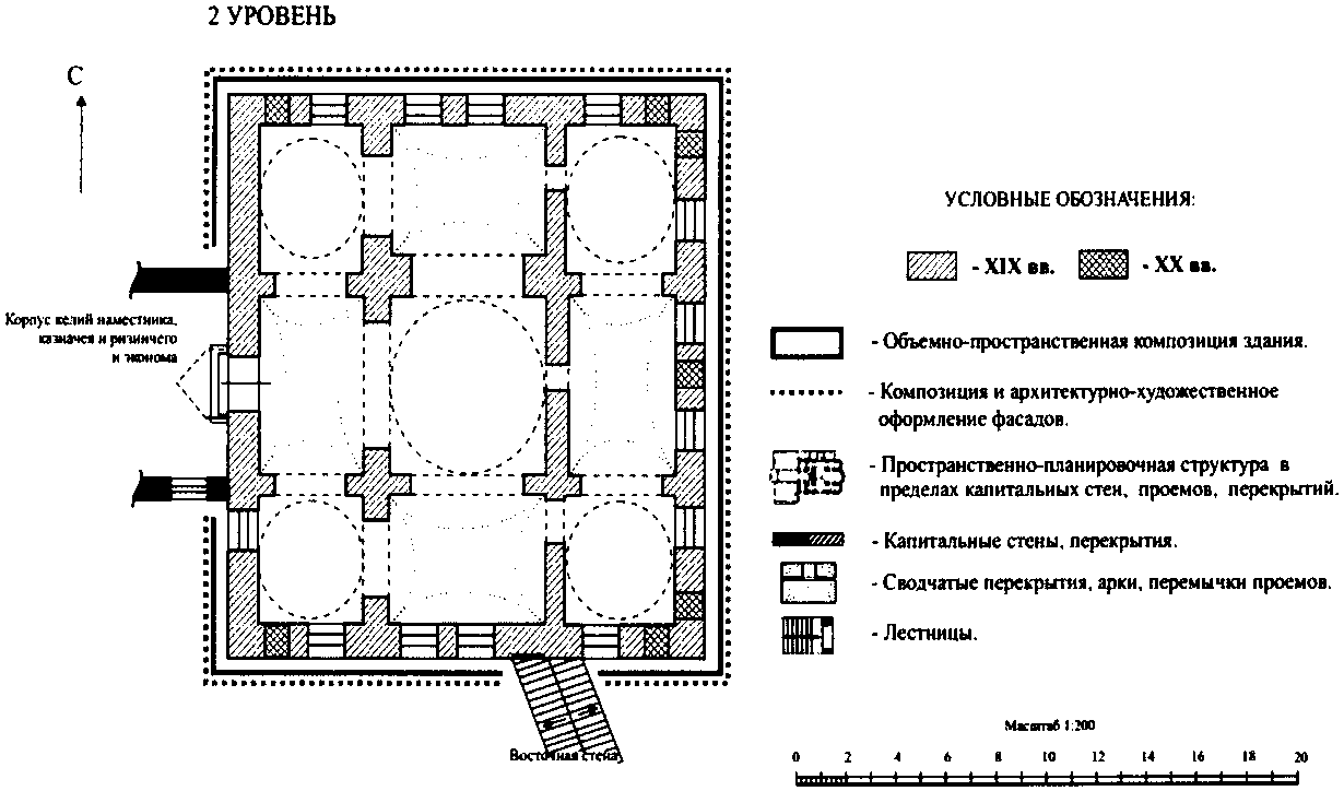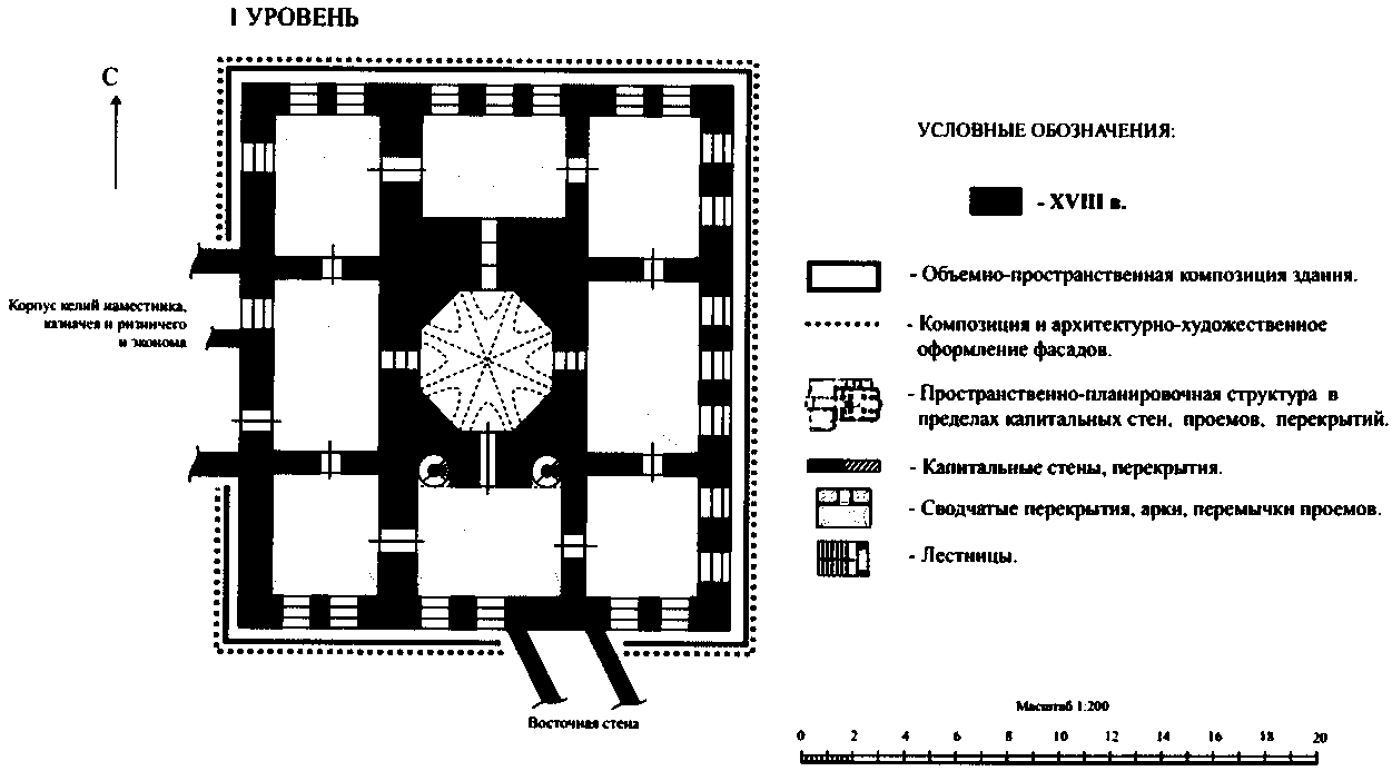 пространственно-планировочная структура здания в пределах капитальных стен, массивных столбов, внутристенной лестницы, дверных и арочных проемов, сводчатых перекрытий и световых барабанов 1759 - 1763, 1823 - 1826 годов;
