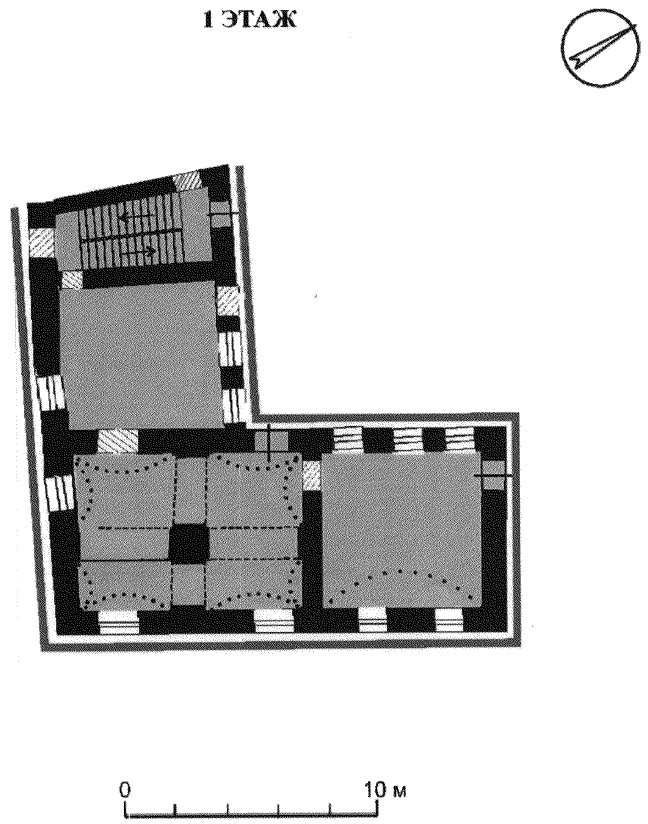 - пространственно-планировочная структура интерьера здания в пределах кирпичных капитальных стен, плоских и сводчатых перекрытий